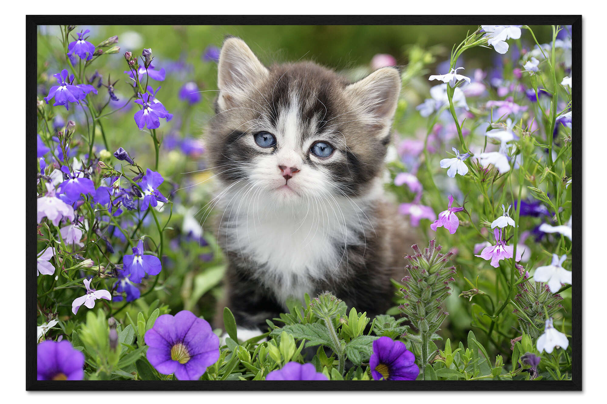 Posterlounge   Wandbilder   Querformat   Greg Cuddiford   Gerahmter Kunstdruck Kätzchen im Blumengarten