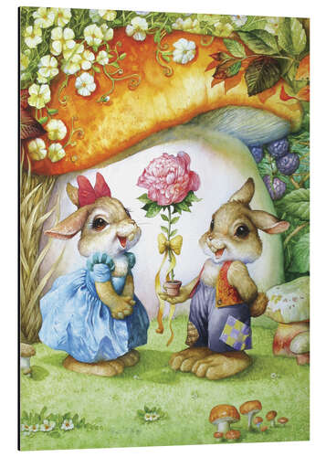 Posterlounge   Wandbilder   Illustration   Petar Meseldzija   Magnettafel Kaninchen und Rosen
