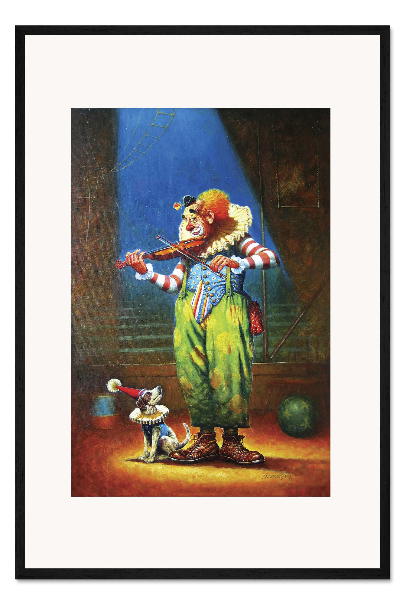 Posterlounge   Wandbilder   Illustration   Petar Meseldzija   Gerahmter Kunstdruck Clown und Hund