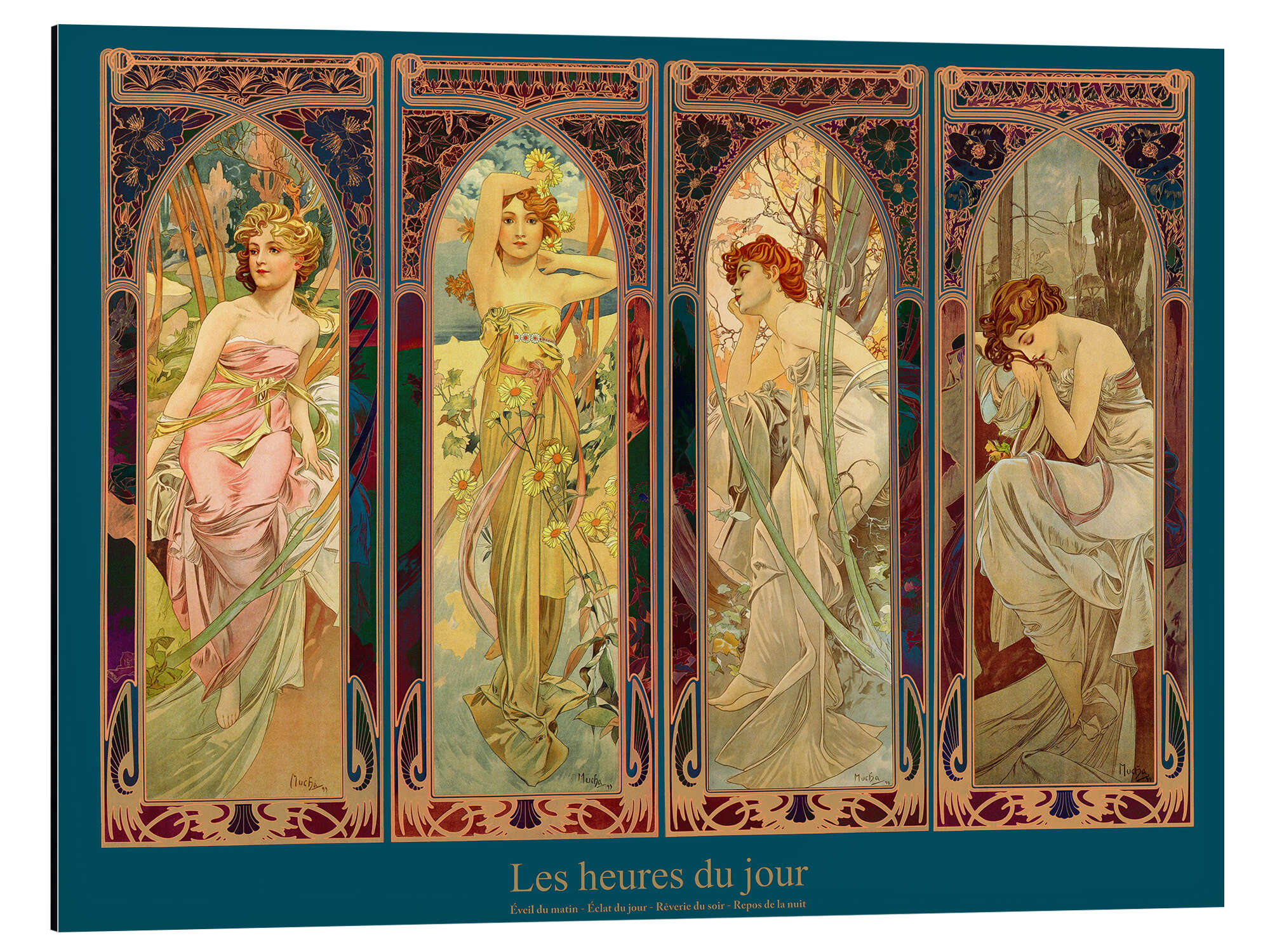 Posterlounge   Wandbilder   Petrol   Alfons Mucha   Magnettafel Les heures du jour (Die Vier Tageszeiten)