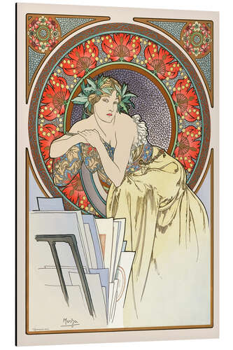Posterlounge   Wandbilder   Rot   Alfons Mucha   Magnettafel Frau mit Bildersammlung, brünett