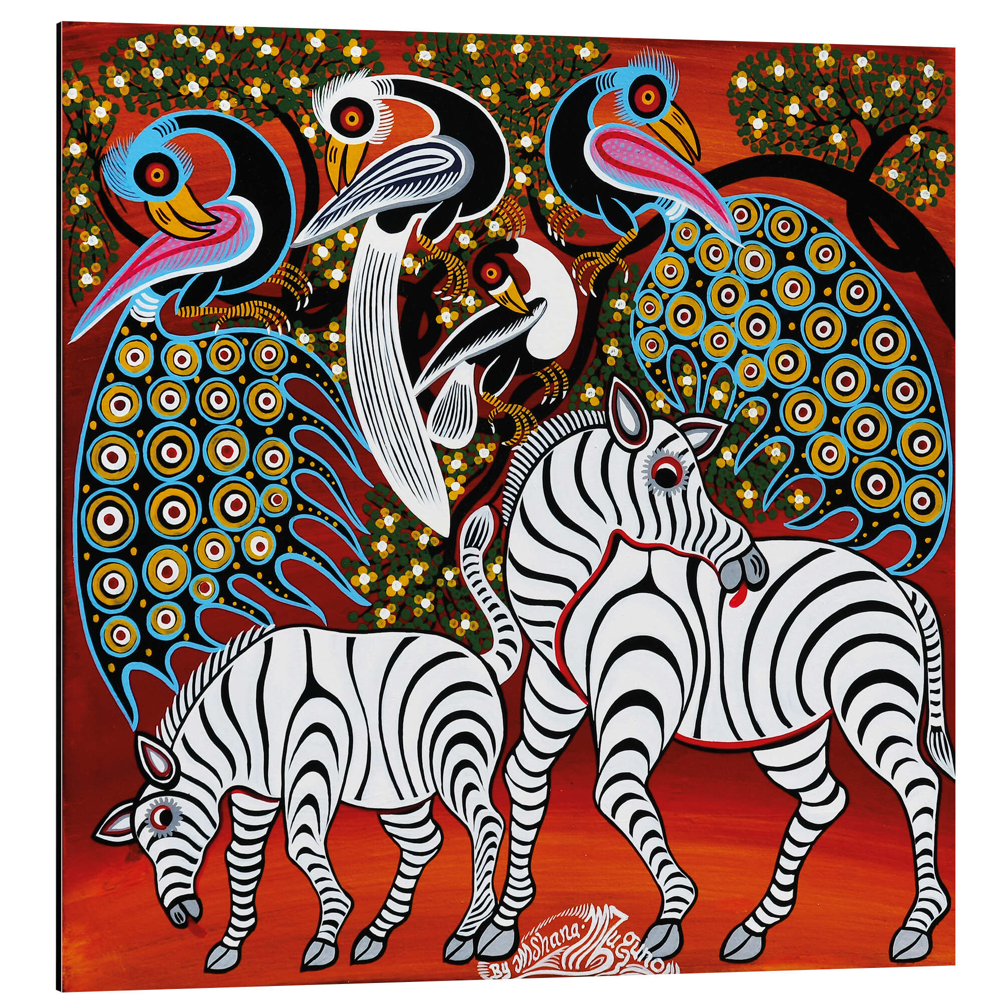 Posterlounge   Wandbilder   Quadrat   Mzuguno   Magnettafel Zebras mit Pfauen