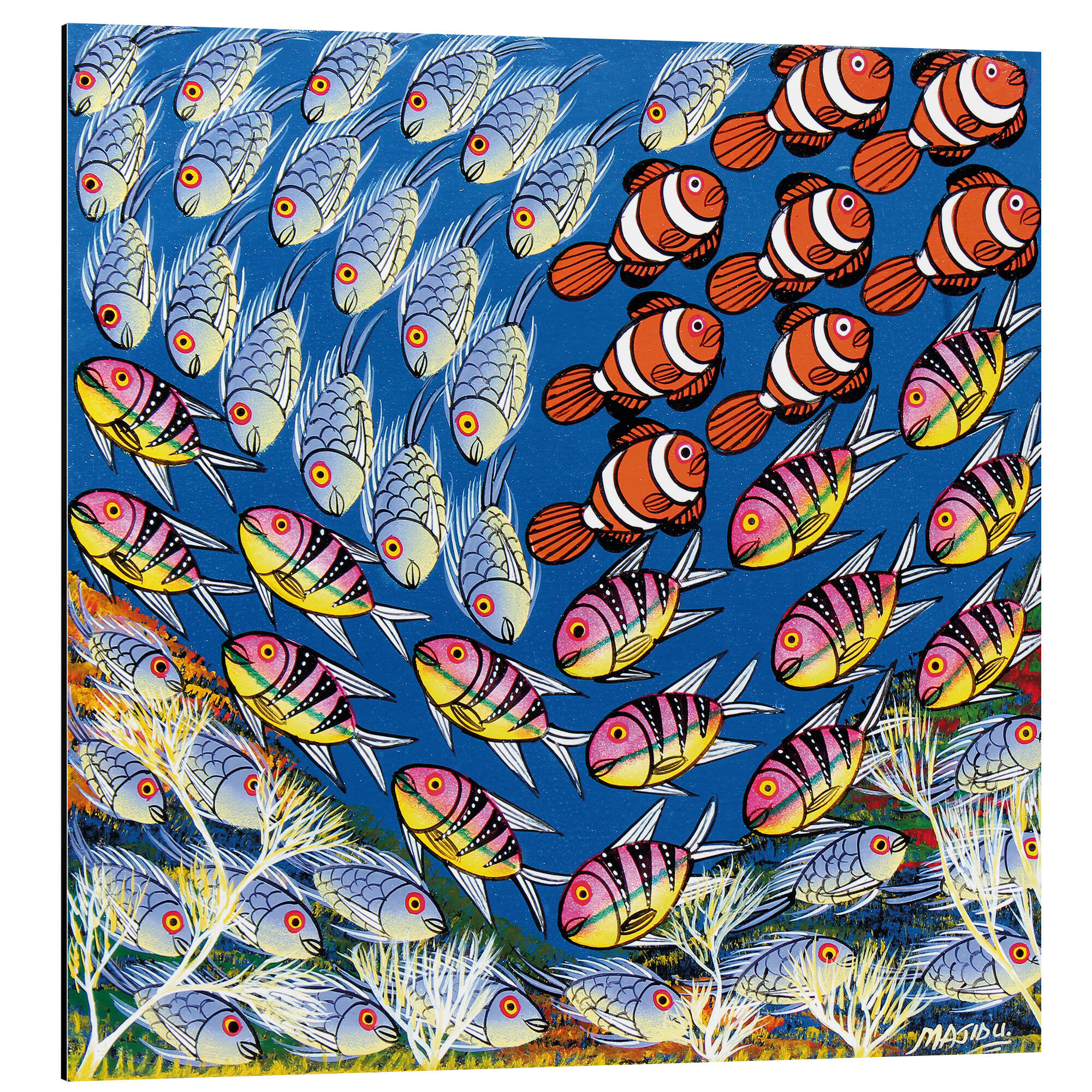 Fischschwarm im Dreieck von Majidu Tanzania Art & Licensing