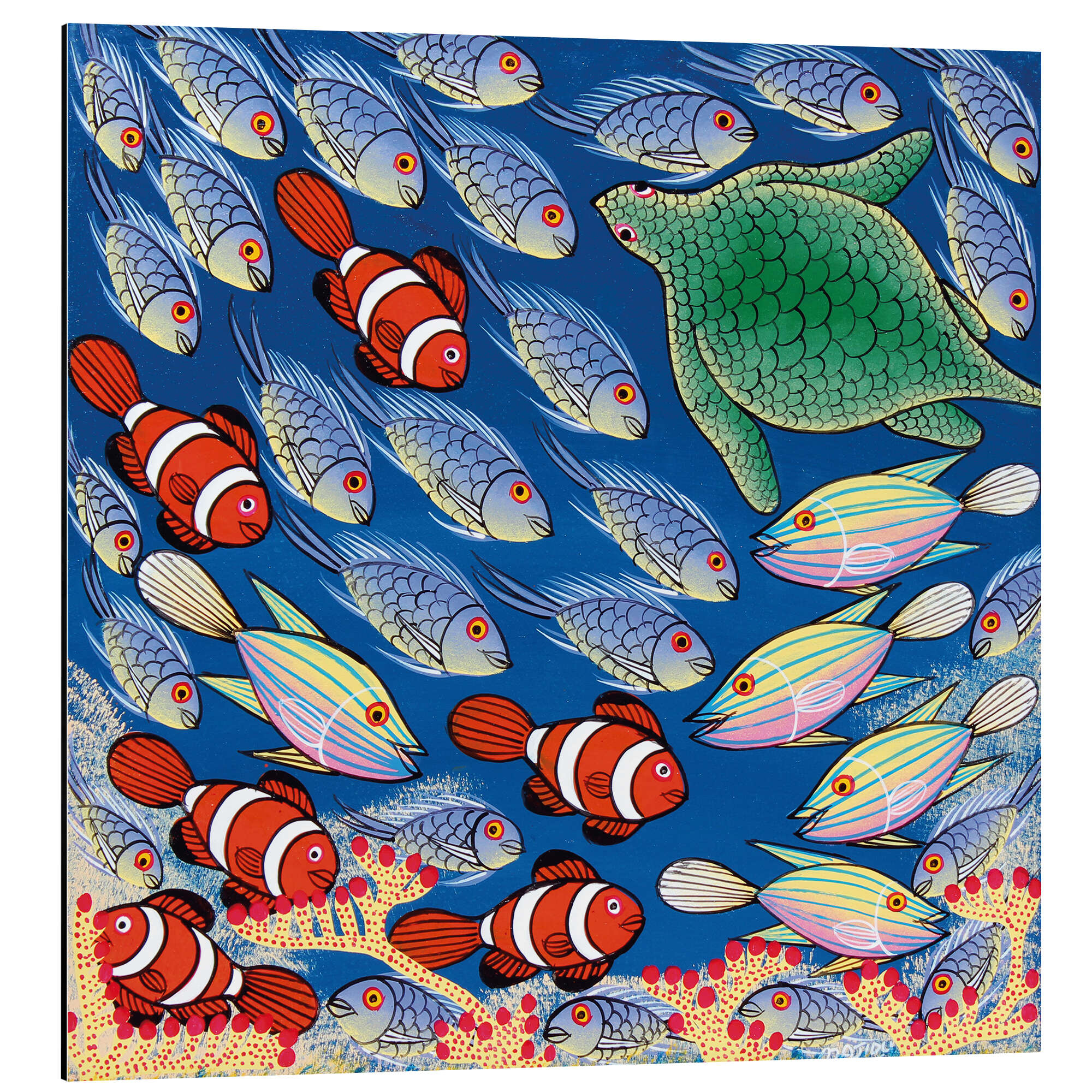 Fischschwarm mit Schildkröte von Majidu Tanzania Art & Licensing