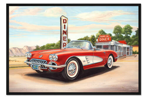 Posterlounge   Wandbilder   Querformat   Georg Huber   Gerahmter Kunstdruck Diner und roter Oldtimer