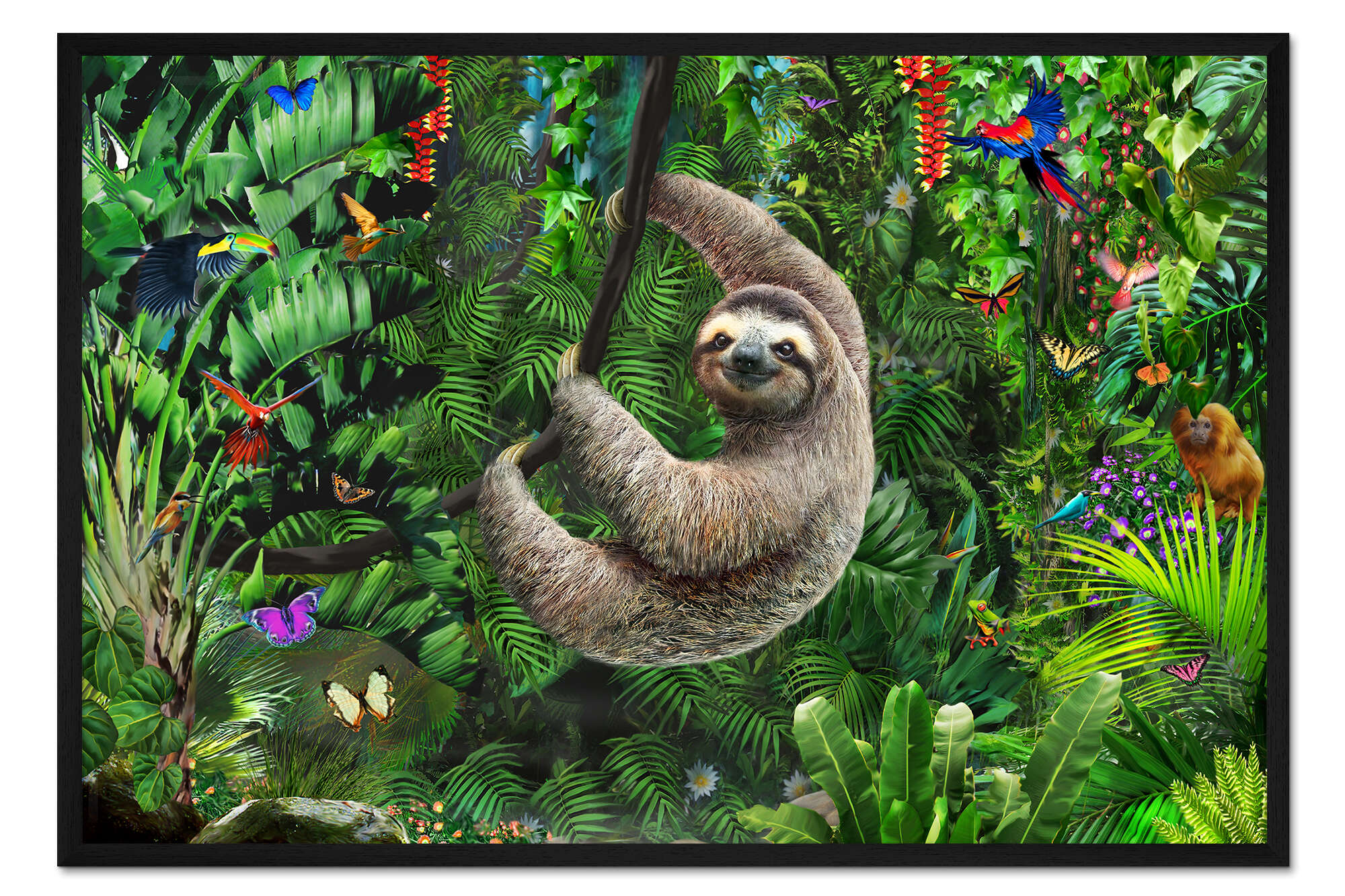 Posterlounge   Wandbilder   Grün   Adrian Chesterman   Gerahmter Kunstdruck Faultier im Dschungel