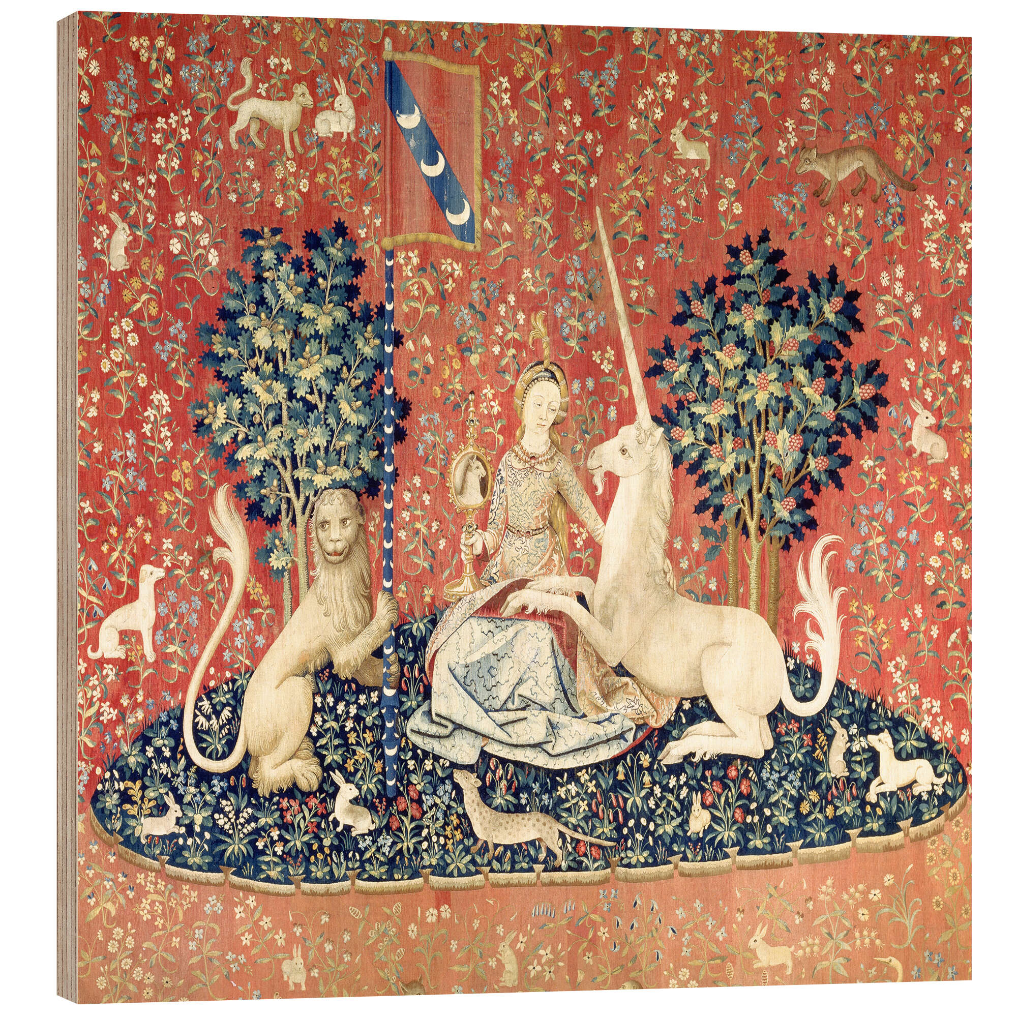 Posterlounge   Wandbilder   Quadrat   Holzbild Die Dame mit dem Einhorn: Der Sehsinn