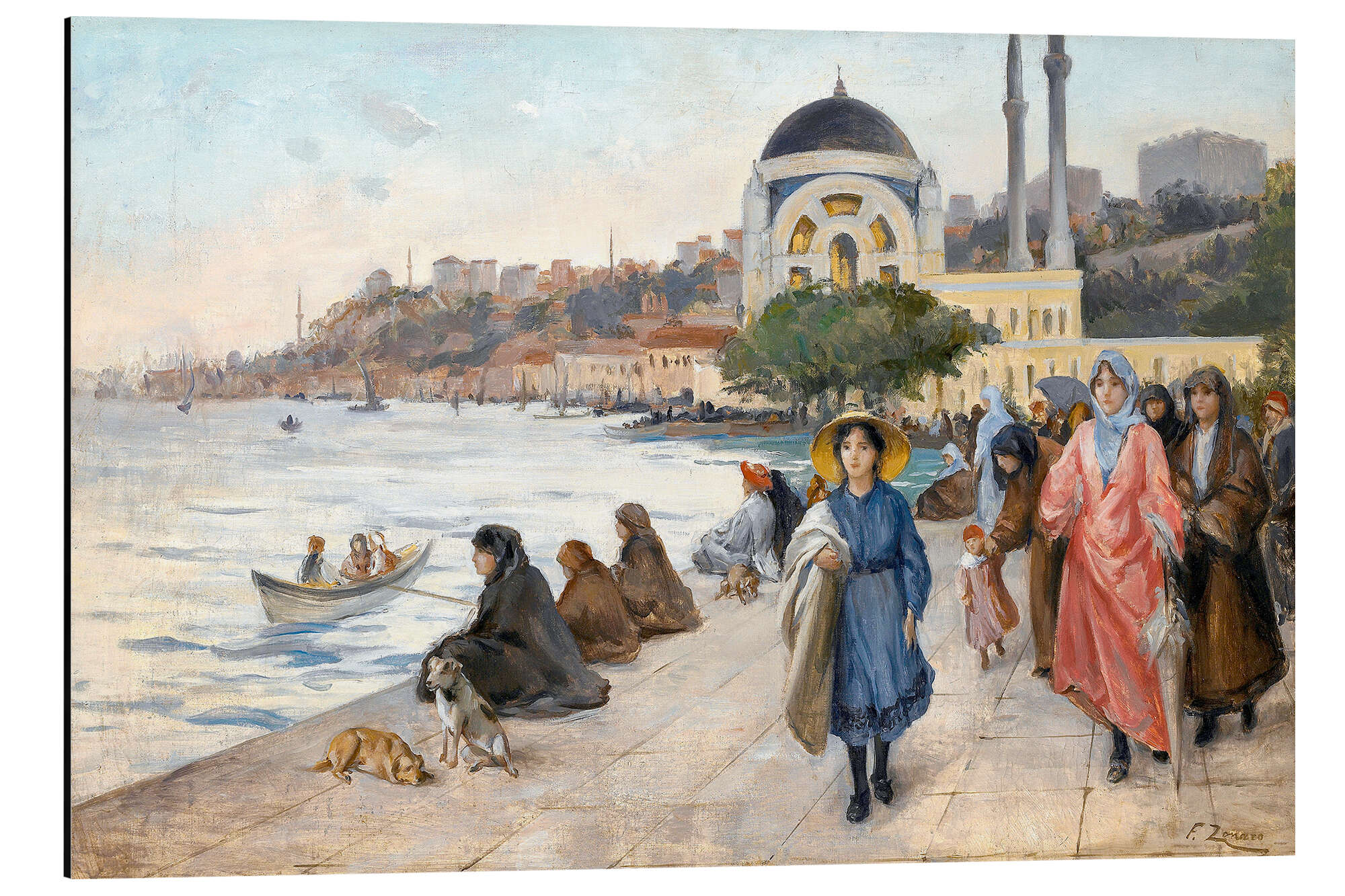 Magnettafel Mafalda am Ufer des Bosporus, die Dolmabahçe Moschee im Hintergrund.