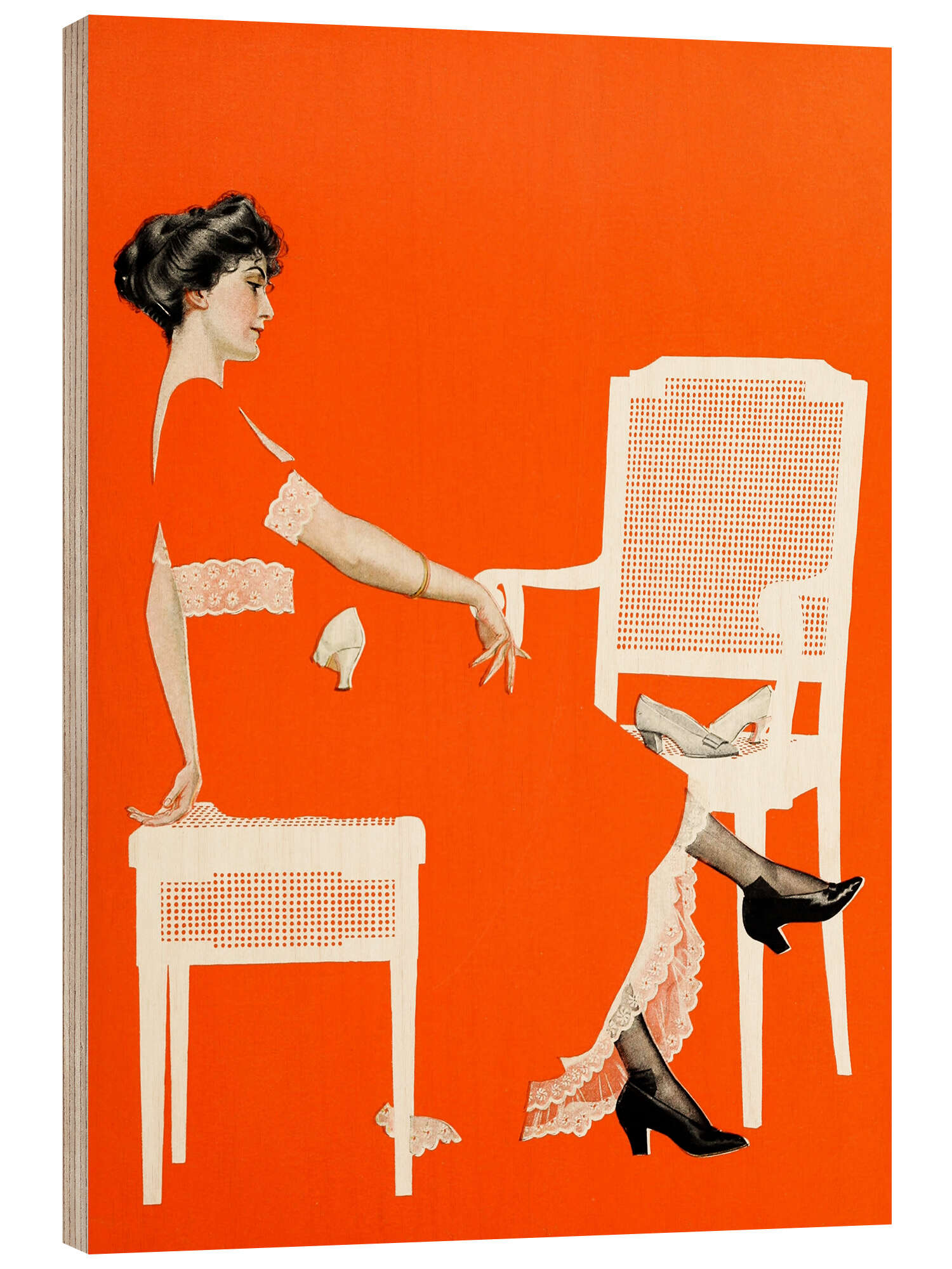 Posterlounge   Wandbilder   Orange   Clarence Coles Phillips   Holzbild Dame bei der Schuhanprobe