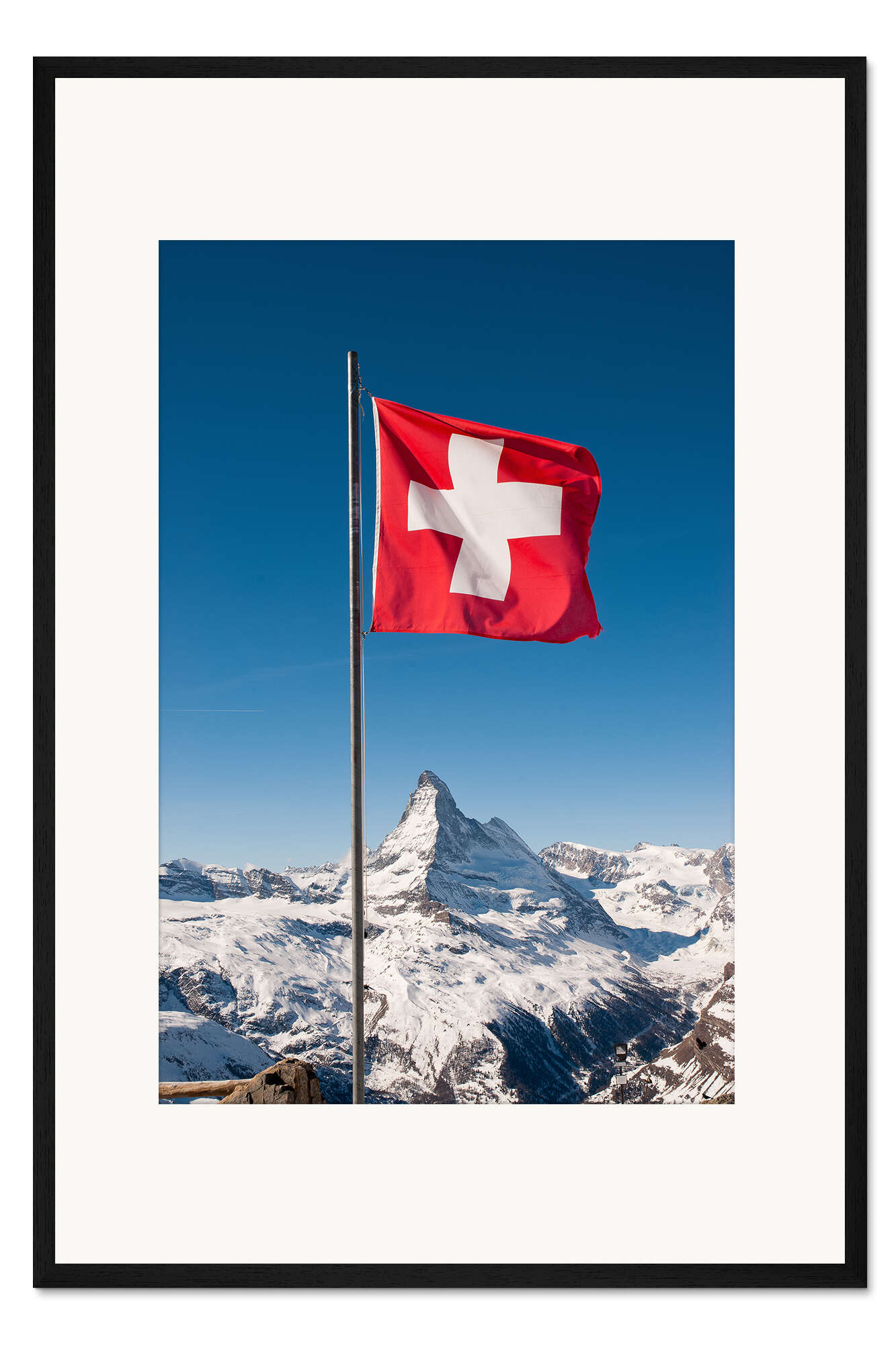 Posterlounge   Wandbilder   Fotografie   Peter Wey   Gerahmter Kunstdruck Matterhorn mit schweizer Flagge. Zermatt, Schweiz.