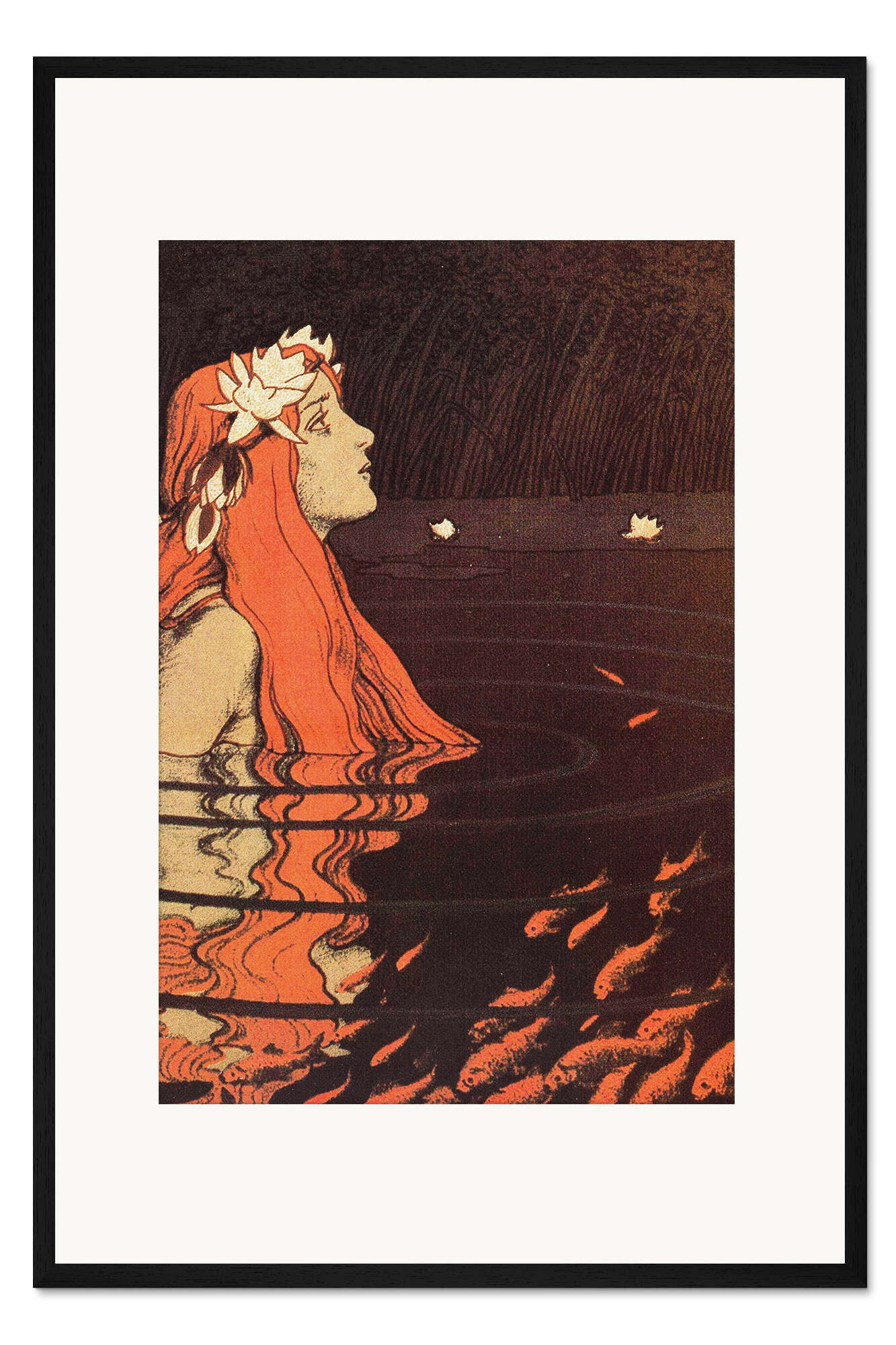 Posterlounge   Wandbilder   Braun   Franz Hein   Gerahmter Kunstdruck Meerjungfrau in einem Teich mit Goldfischen