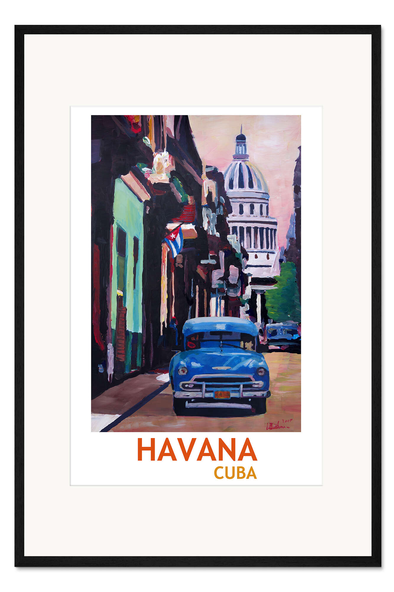 Posterlounge   Wandbilder   Illustration   M. Bleichner   Gerahmter Kunstdruck Oldtimer Straßenszene in Havanna
