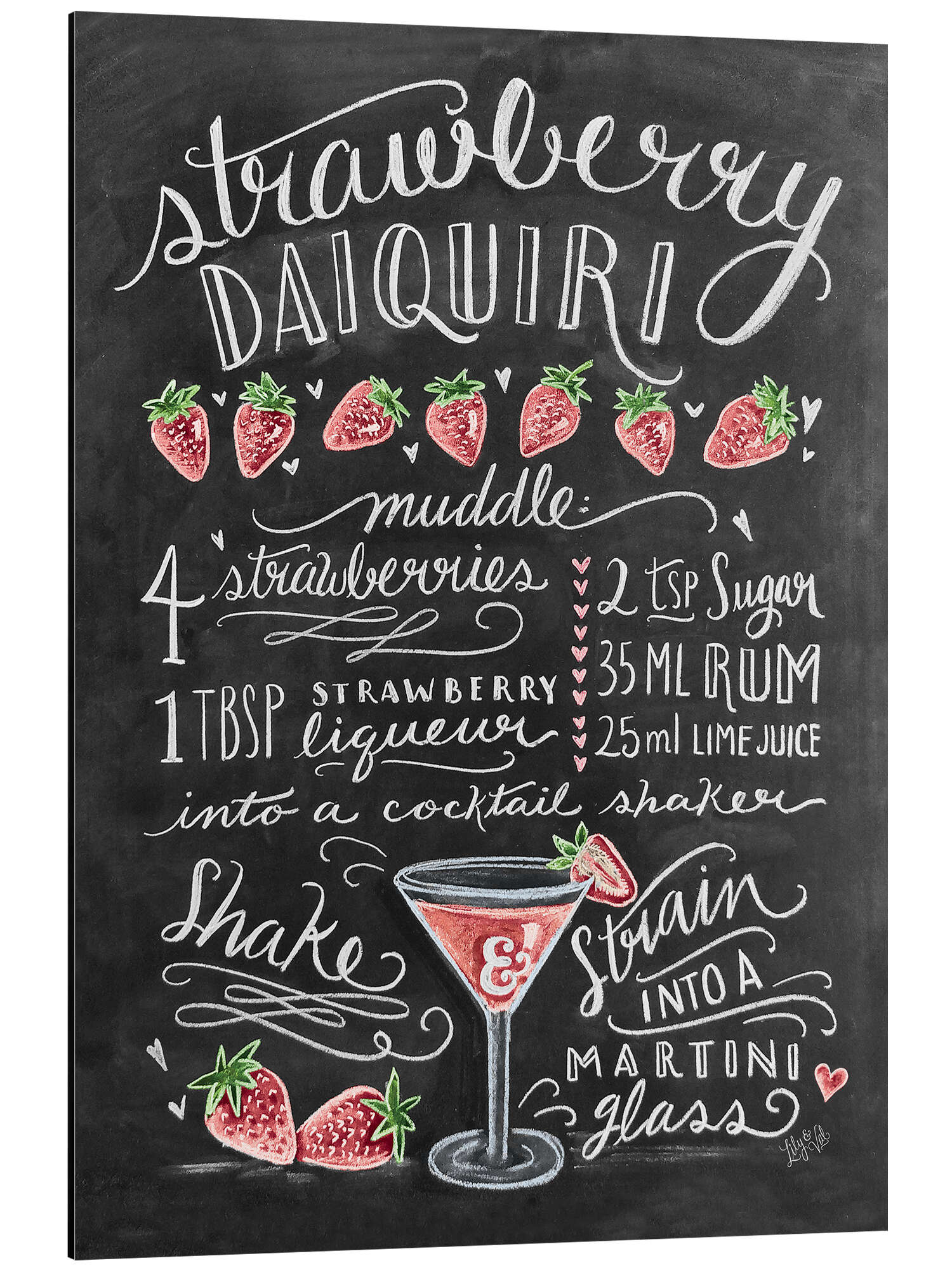 Posterlounge   Wandbilder   Hochformat   Lily & Val   Magnettafel Erdbeer-Daiquiri Rezept (Englisch)