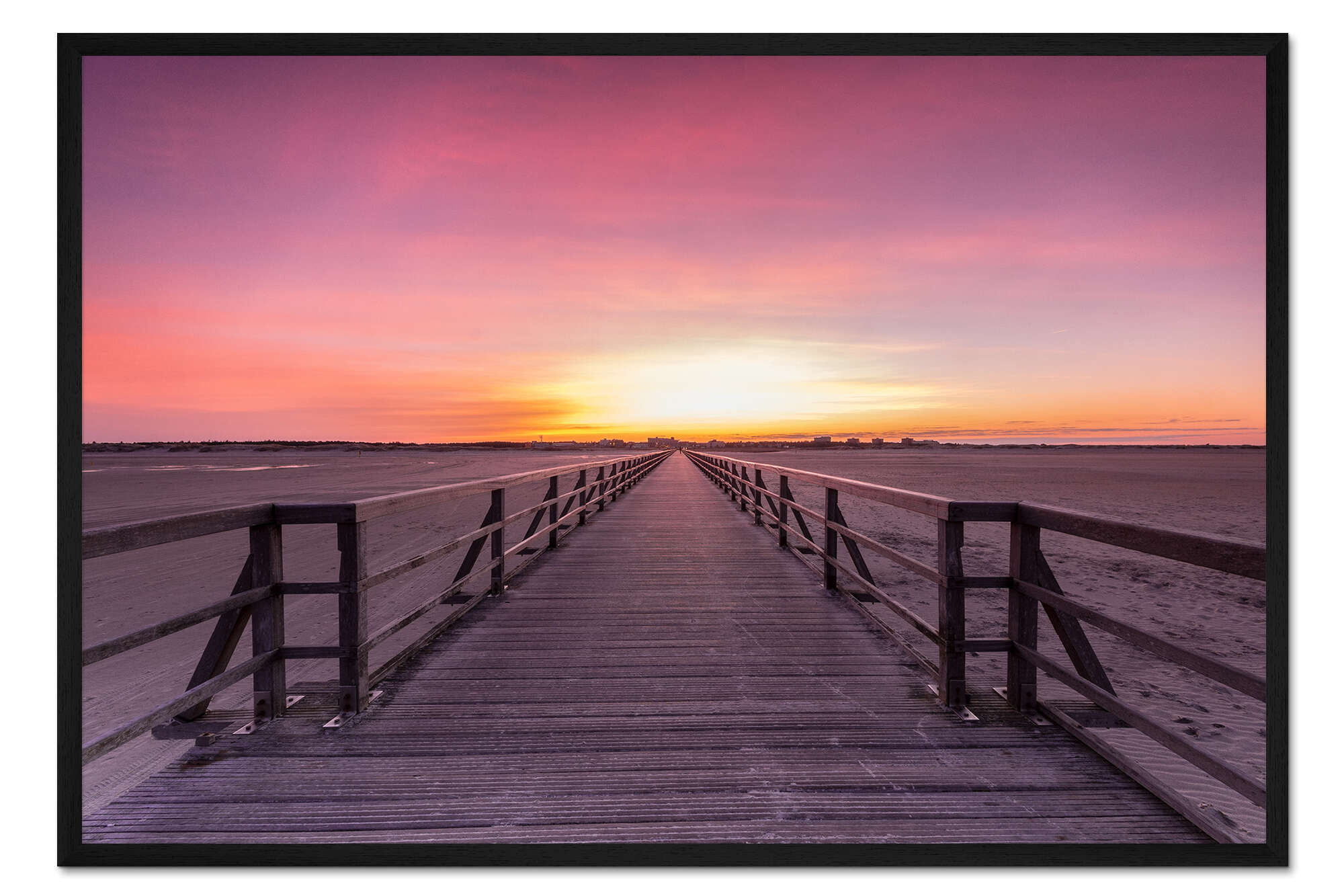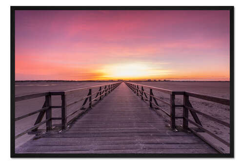Posterlounge   Wandbilder   Querformat   Dennis Stracke   Gerahmter Kunstdruck Langer Steg am Strand von St Peter Ording
