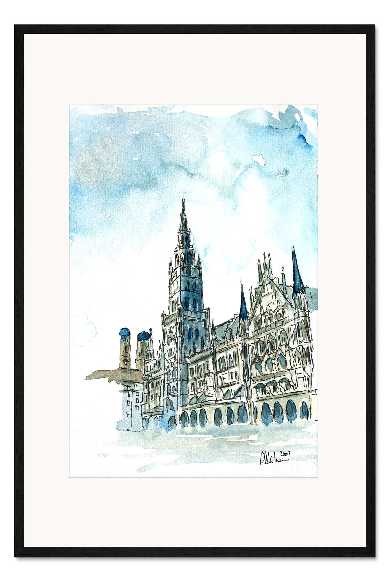 Posterlounge   Künstler   M. Bleichner   Gerahmter Kunstdruck München Neues Rathaus am Marienplatz Aquarell