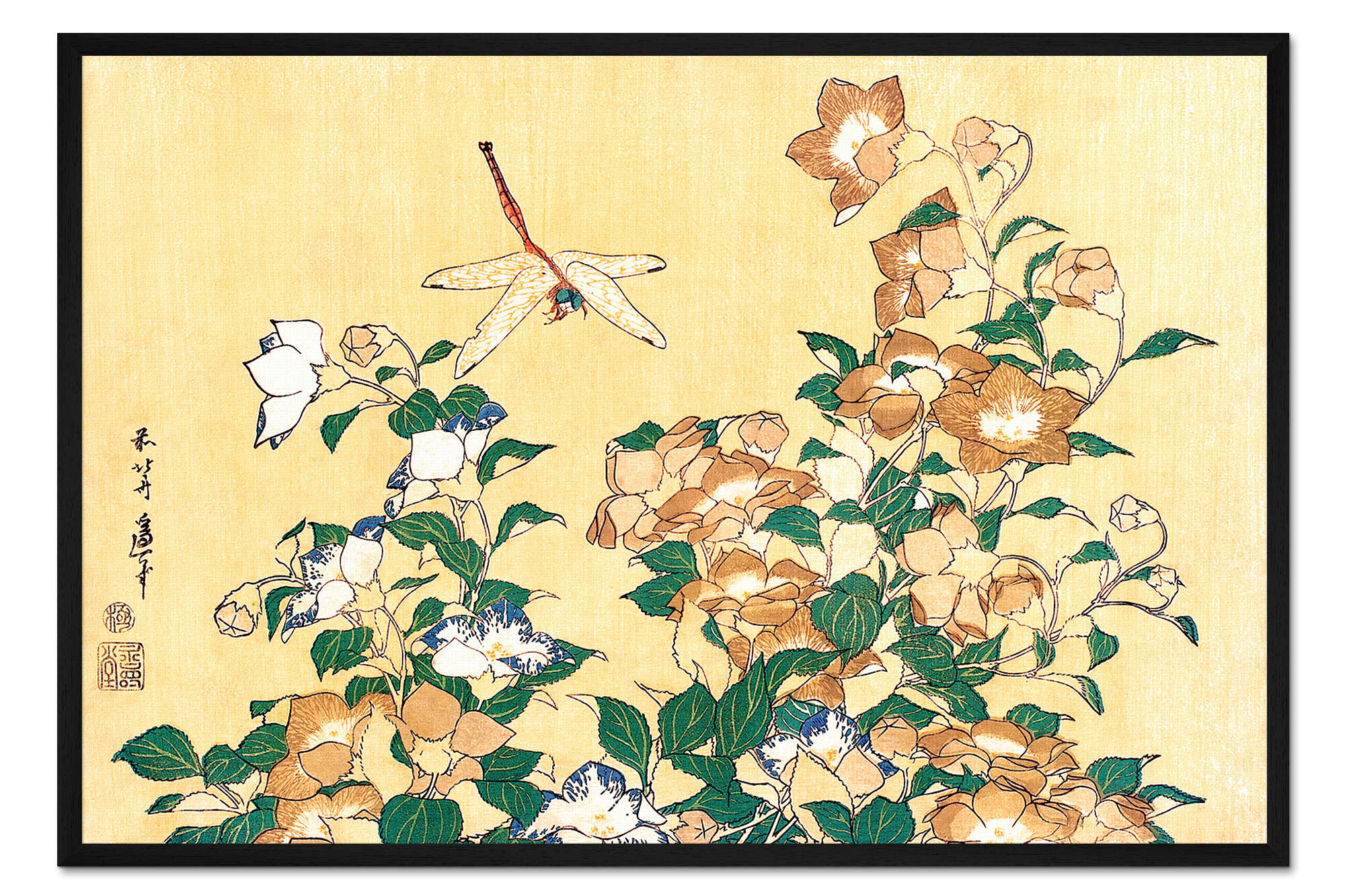 Posterlounge   Wandbilder   Gelb   Katsushika Hokusai   Gerahmter Kunstdruck Chinesische Glockenblume und Libelle. Aus 'Die große Blumenserie'.