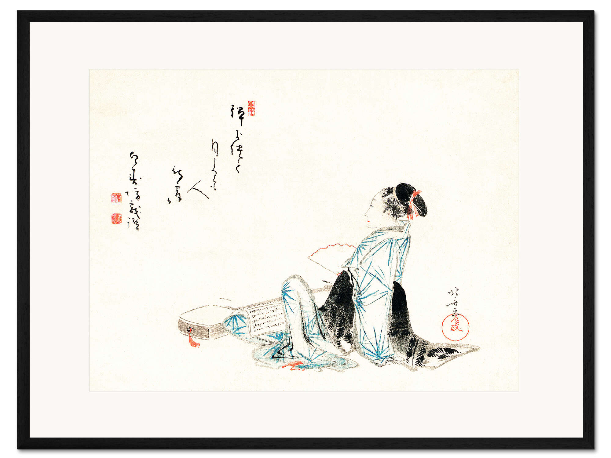 Posterlounge   Wandbilder   Beige   Katsushika Hokusai   Gerahmter Kunstdruck Schönheit wartet auf ihren Liebhaber (Japanisch)