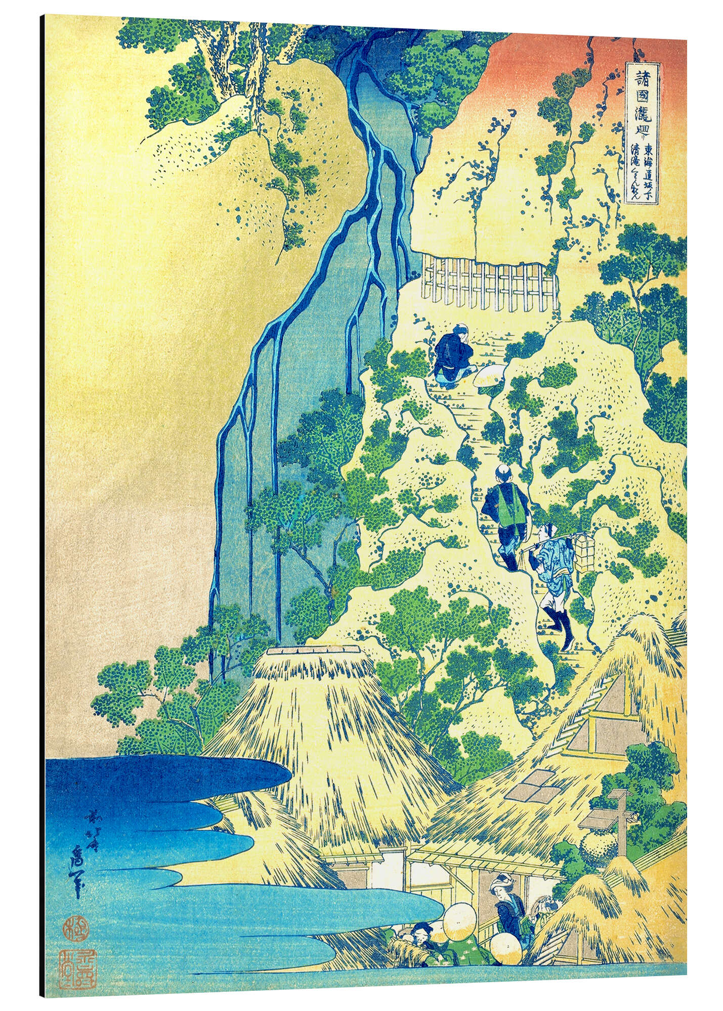 Posterlounge   Wandbilder   Gelb   Katsushika Hokusai   Magnettafel Reisende beim Aufstieg eines steilen Berges