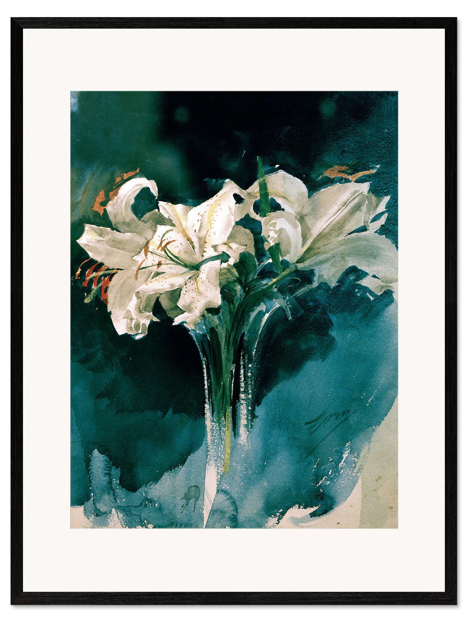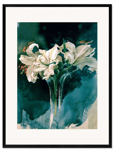 Gerahmter Kunstdruck Weiße Lilien