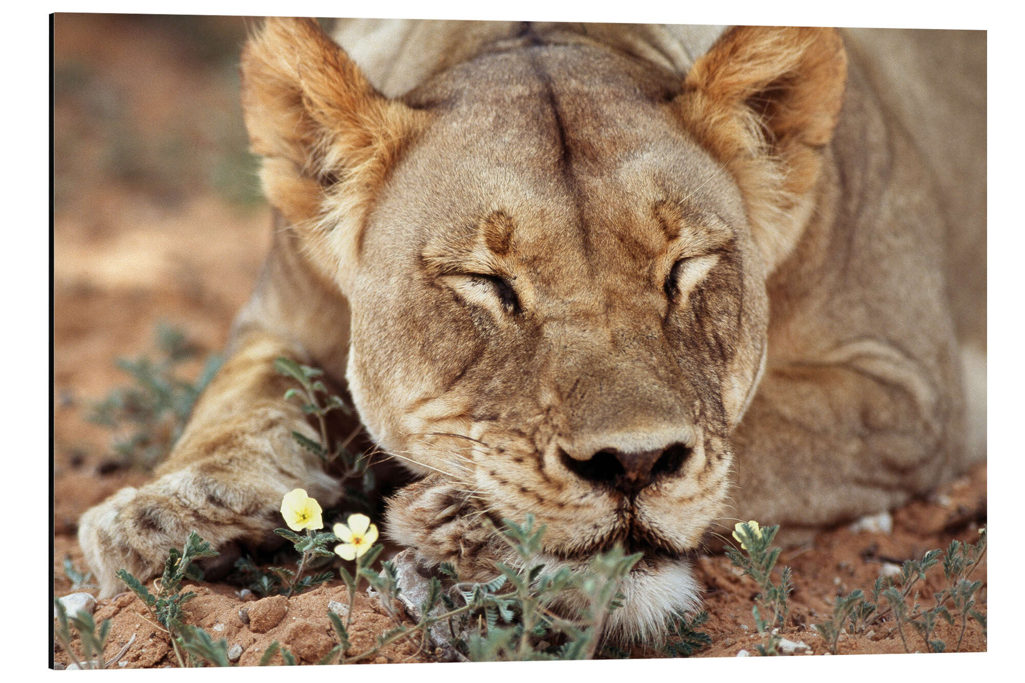 Posterlounge   Wandbilder   Fotografie   Paul Souders   Magnettafel Löwin schläft auf Wildblumen