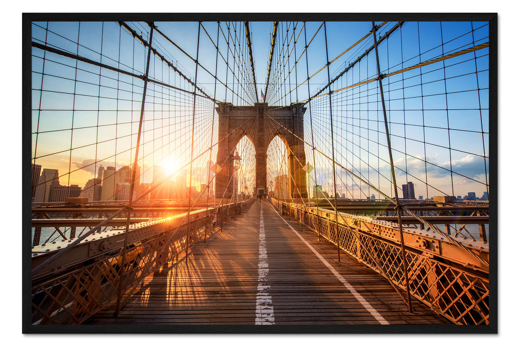 Posterlounge   Wandbilder   Fotografie   Jan Christopher Becke   Gerahmter Kunstdruck Brooklyn Bridge in New York bei Sonnenaufgang