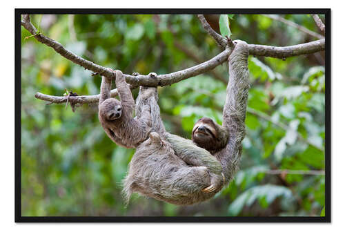 Posterlounge   Wandbilder   Grün   Jim Goldstein   Gerahmter Kunstdruck Braunkehl-Faultier mit Baby