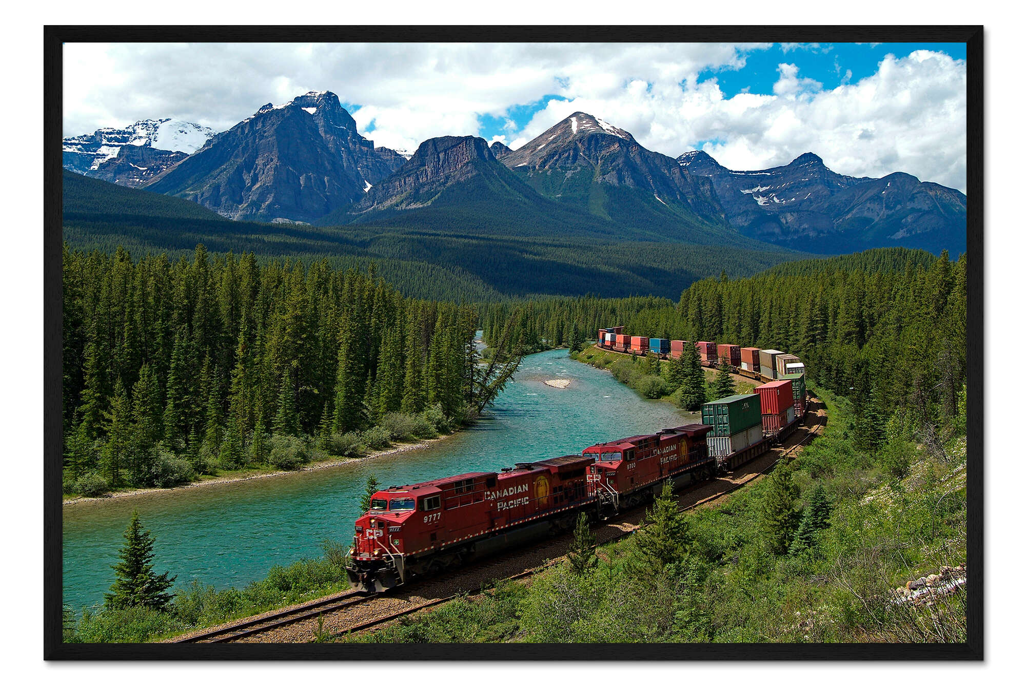 Posterlounge   Wandbilder   Querformat   Hans-Peter Merten   Gerahmter Kunstdruck Morants-Kurve mit Eisenbahn und Bow River