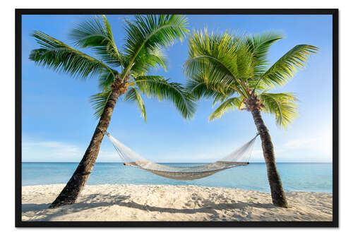 Posterlounge   Wandbilder   Fotografie   Jan Christopher Becke   Gerahmter Kunstdruck Hängematte am Strand mit Palmen in der Südsee