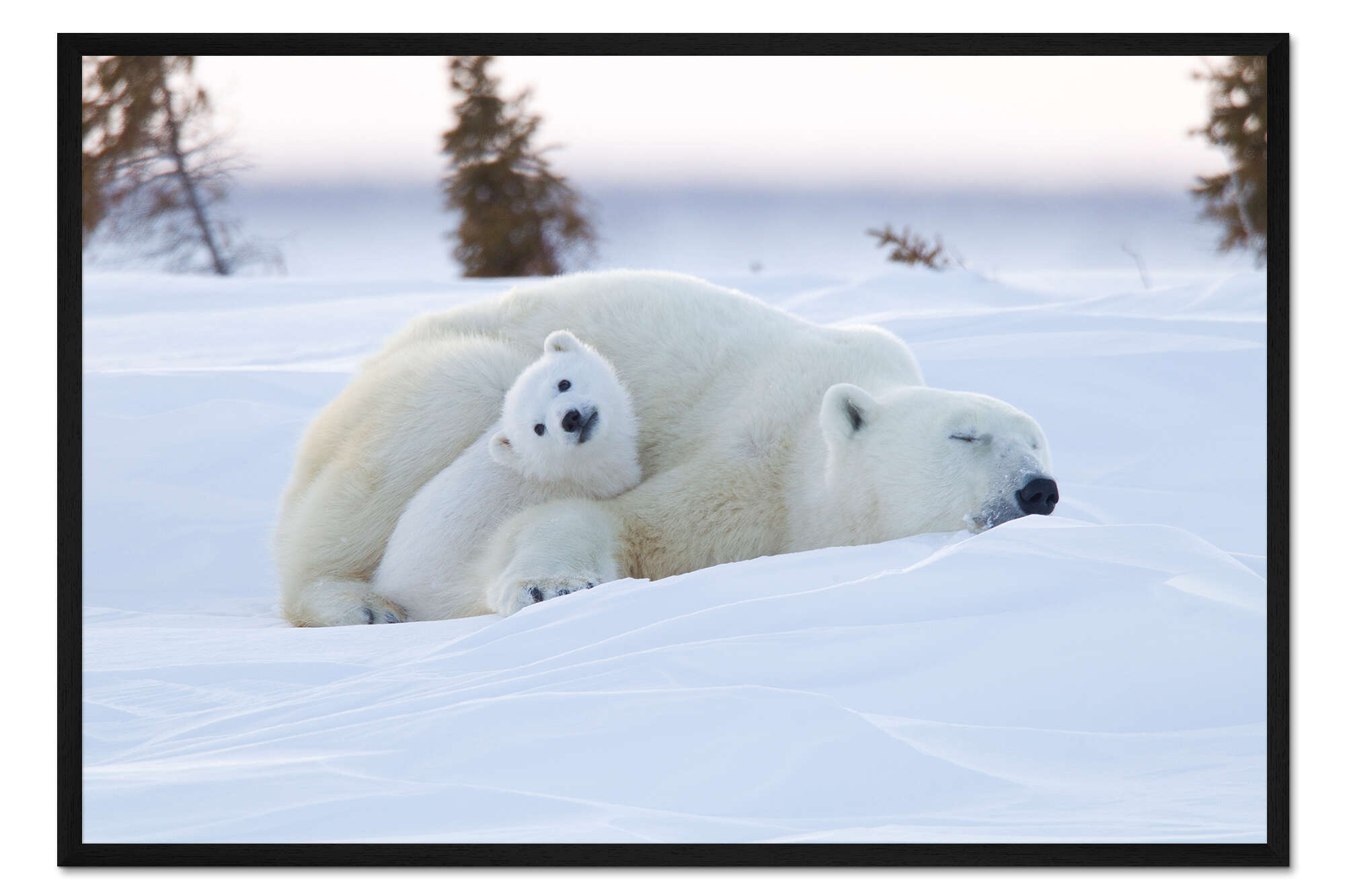 Posterlounge   Wandbilder   Fotografie   David Jenkins   Gerahmter Kunstdruck Eisbärbaby mit schlafender Mama