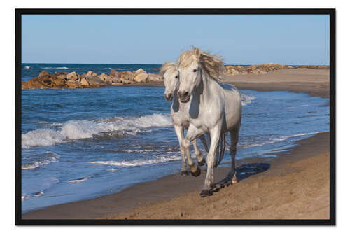 Posterlounge   Wandbilder   Querformat   Gerahmter Kunstdruck Camargue-Pferde am Strand