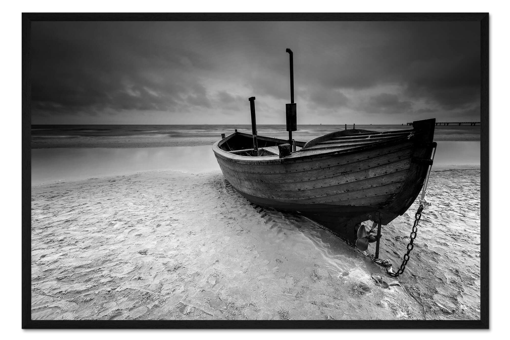 Posterlounge   Wandbilder   Querformat   Filtergrafia   Gerahmter Kunstdruck Fischerboot am Strand monochrome