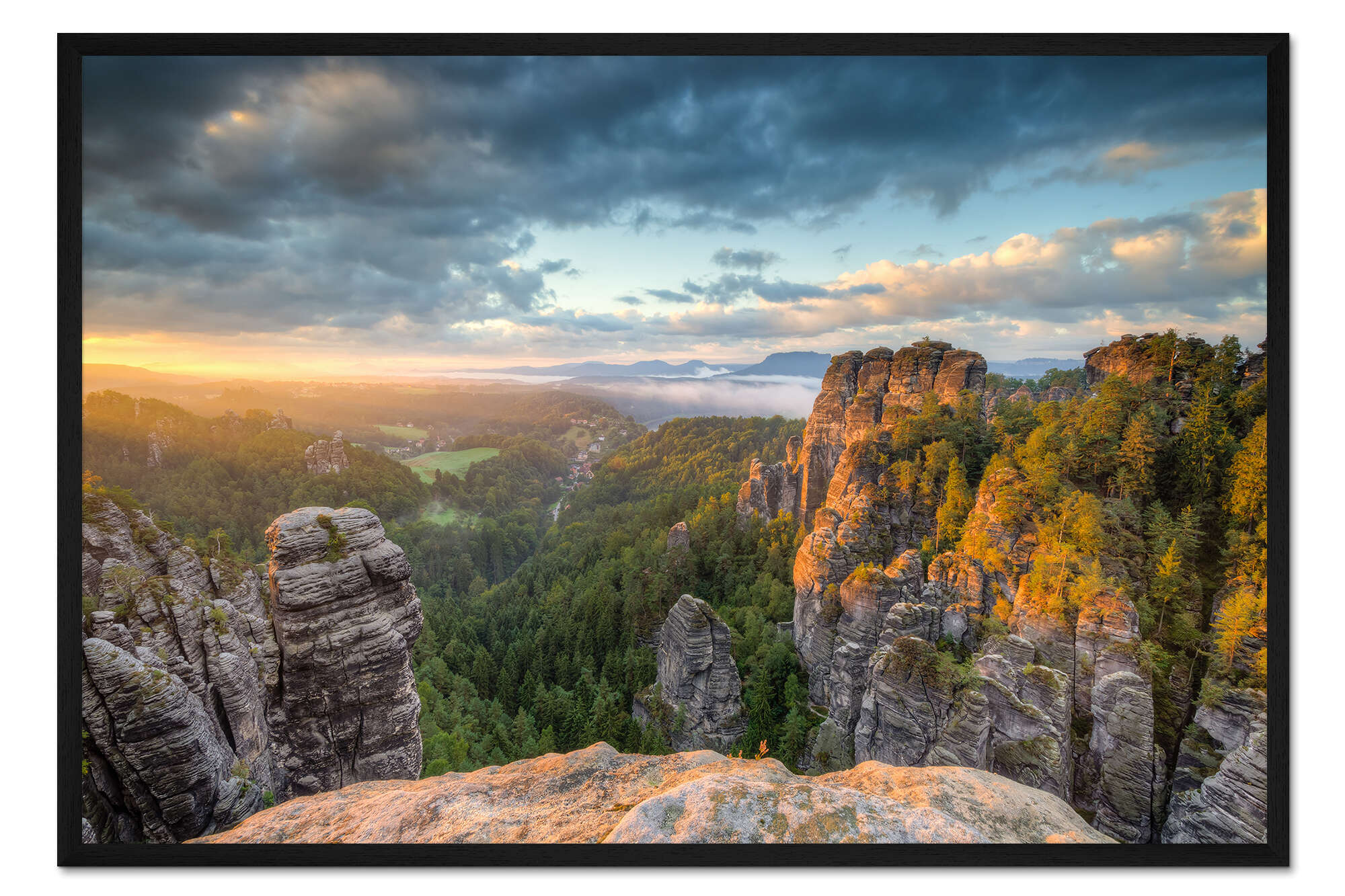 Posterlounge   Wandbilder   Querformat   Michael Valjak   Gerahmter Kunstdruck Sonnenaufgang im Elbsandsteingebirge