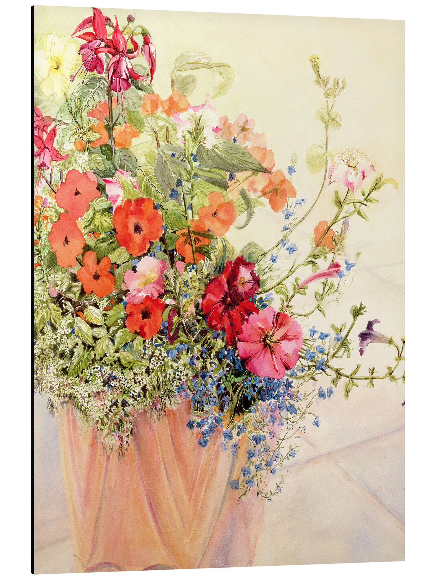 Posterlounge   Künstler   Joan Thewsey   Magnettafel Petunien, Lobelien, fleisige Lieschen und Fuchsien im Terracottatopf