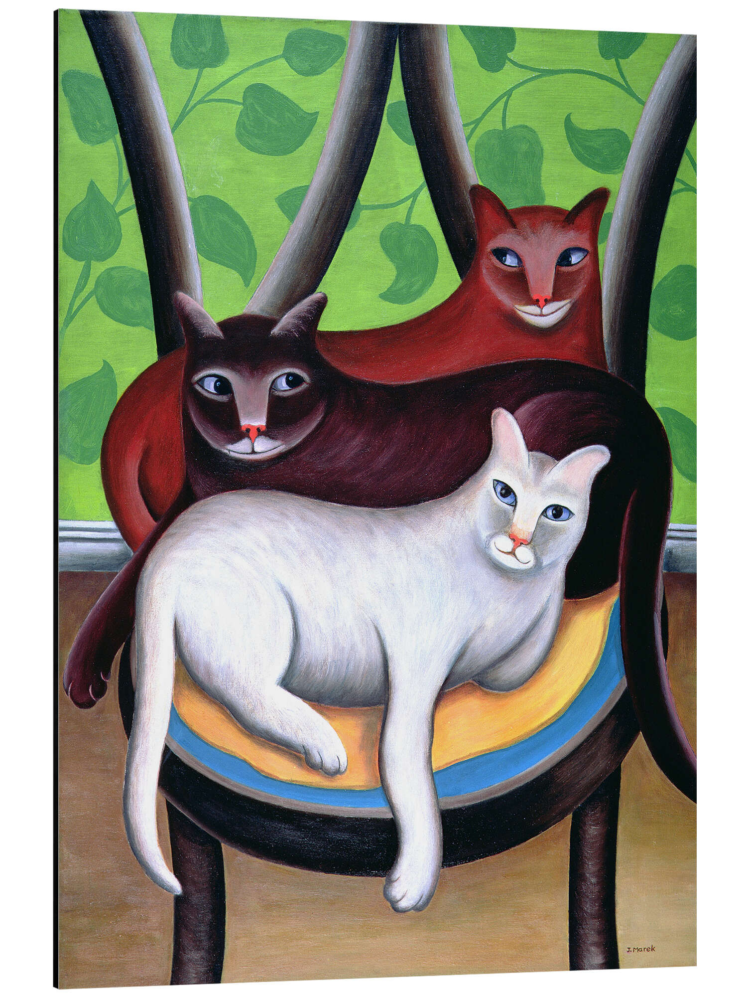Zwei Katzen, blau und gelb