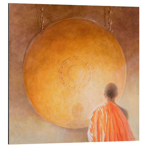 Posterlounge   Wandbilder   Orange   Lincoln Seligman   Magnettafel Junger Buddhistenmönch mit einem Gong