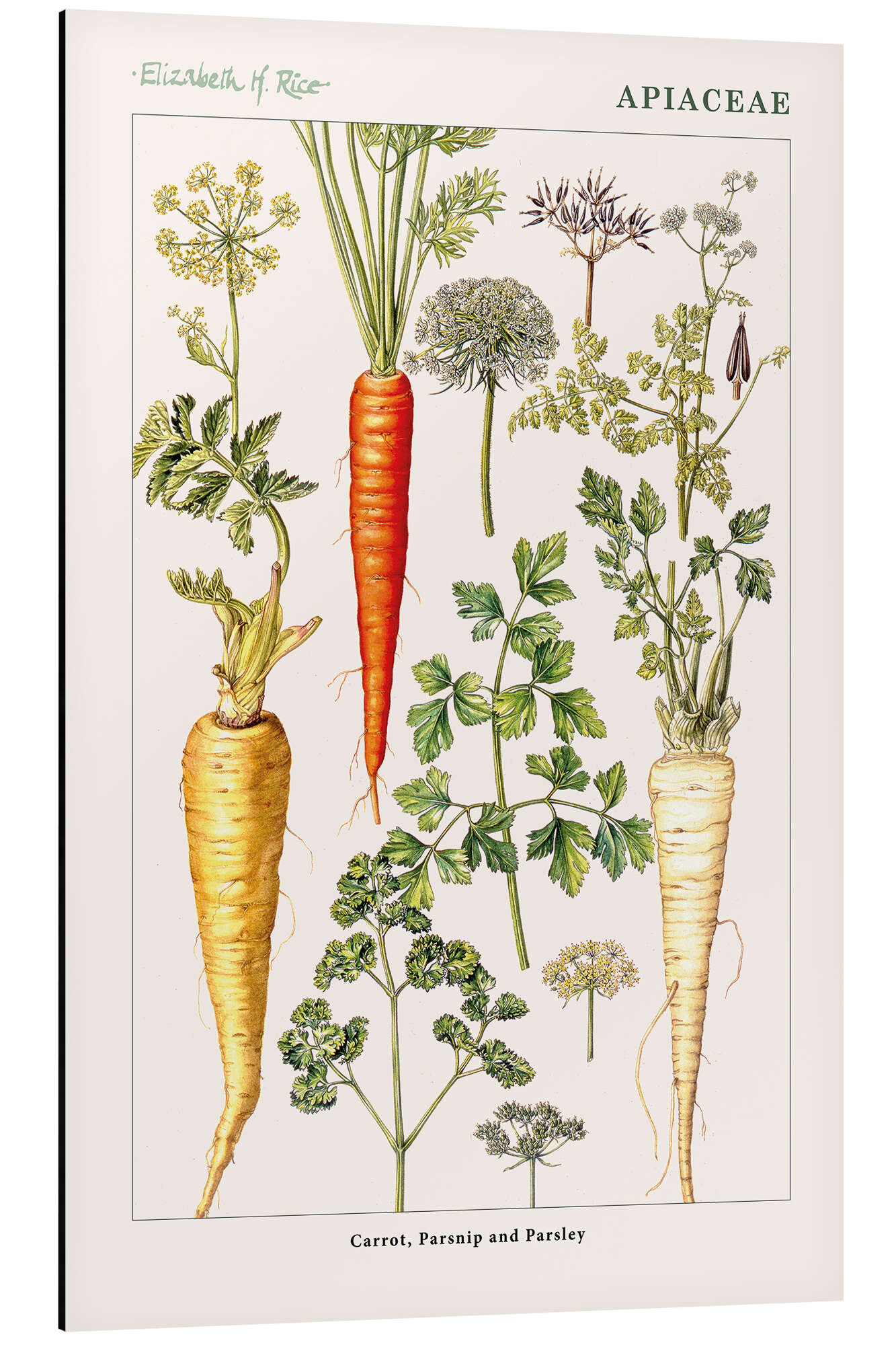 Posterlounge   Wandbilder   Illustration   Elizabeth Rice   Magnettafel Karotte, Pastinake und Petersilie (englisch)