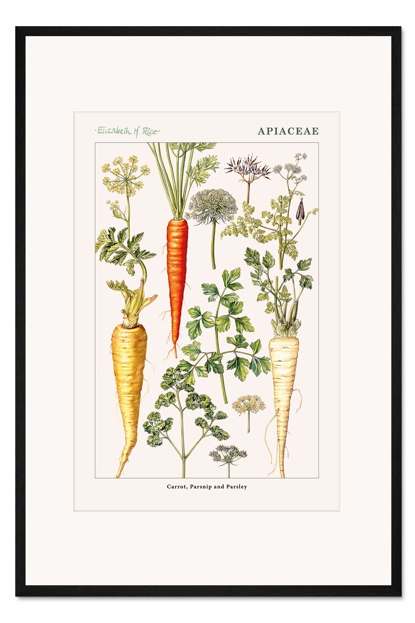 Posterlounge   Wandbilder   Illustration   Elizabeth Rice   Gerahmter Kunstdruck Karotte, Pastinake und Petersilie (englisch)