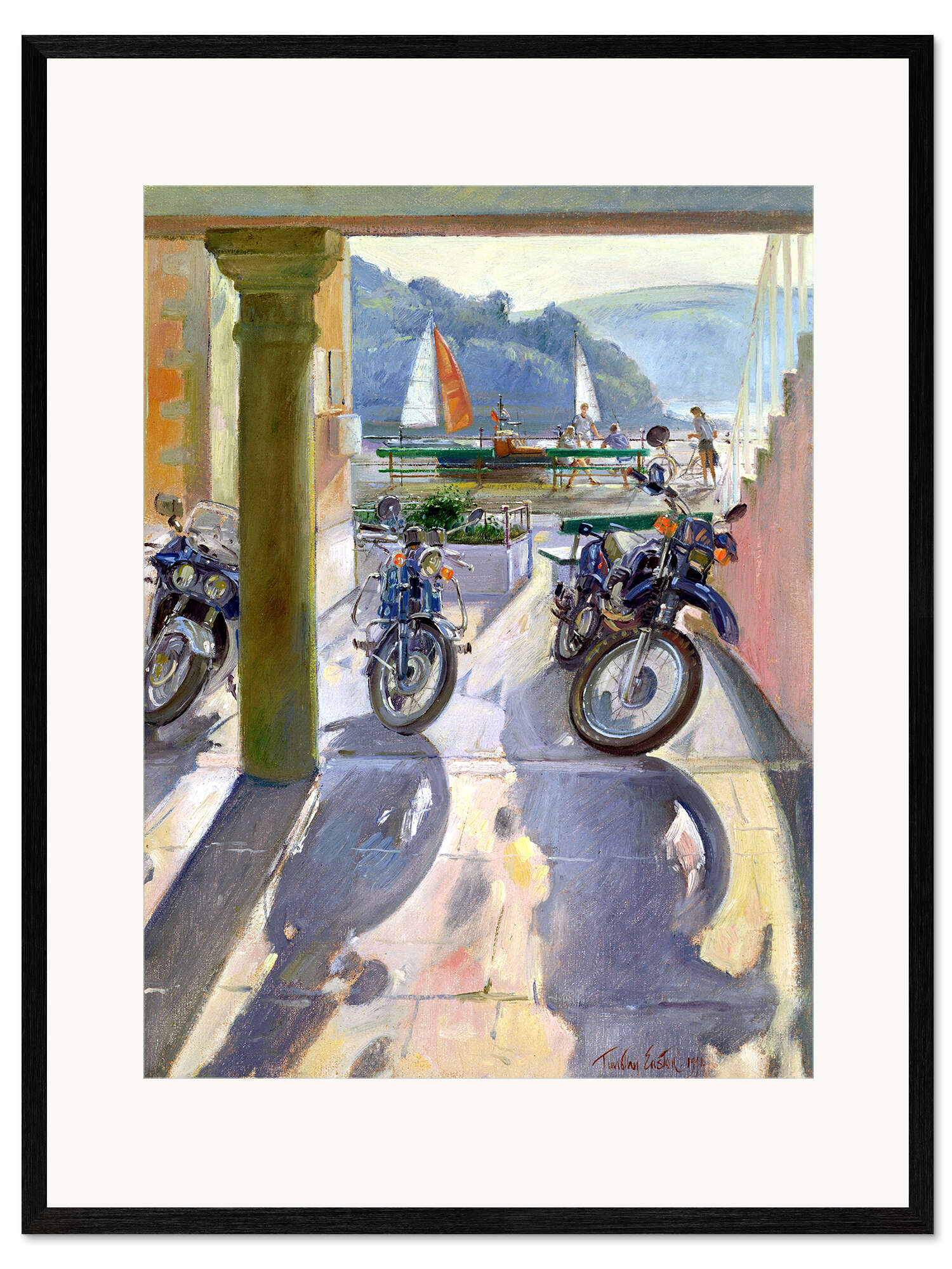 Gerahmter Kunstdruck Motorräder und Segelboote