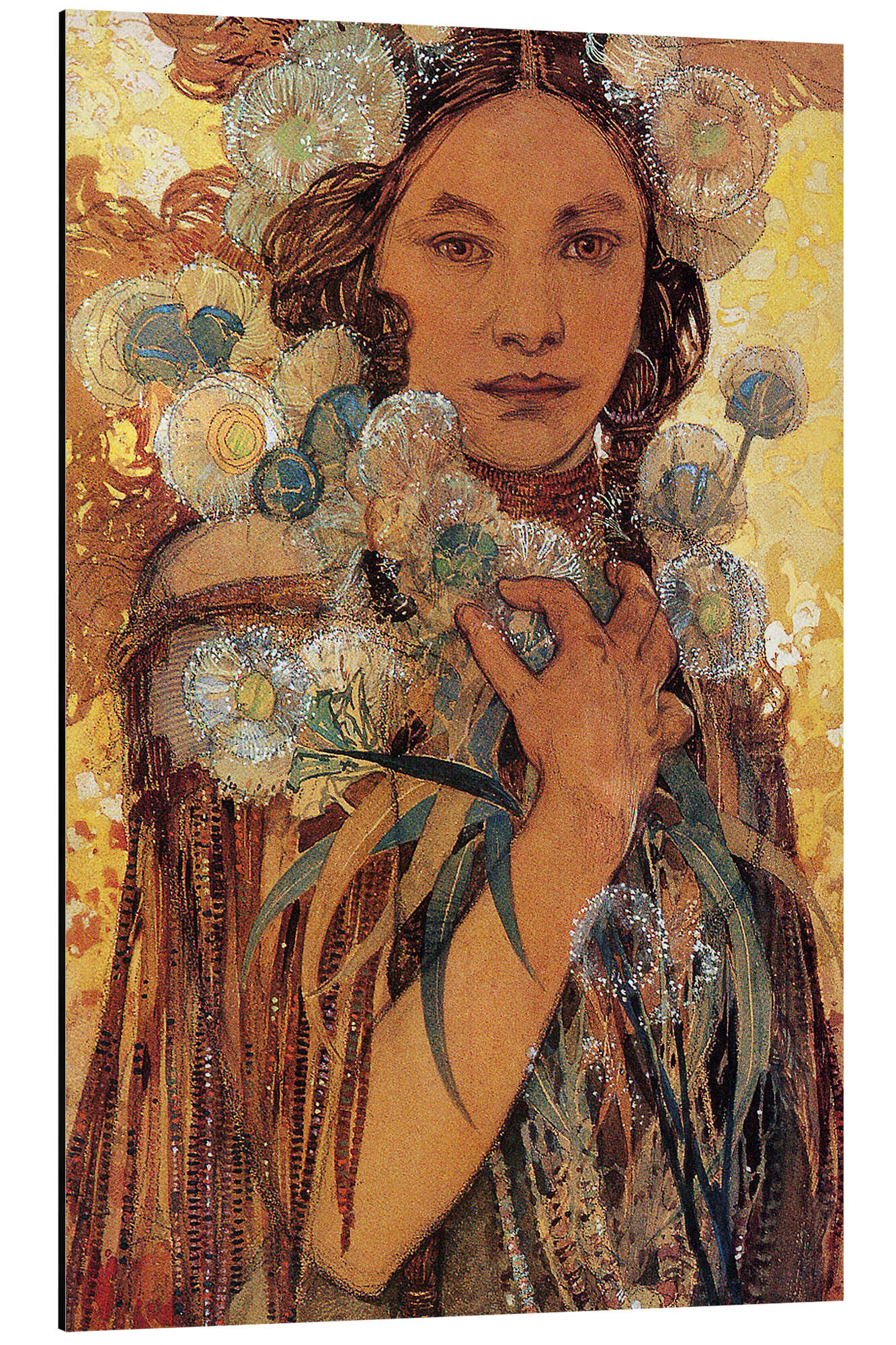 Amerikanische Ureinwohnerin mit Blumen und Federn von Alfons Mucha Master Collection