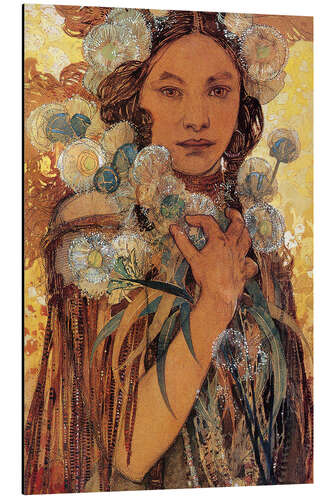 Posterlounge   Wandbilder   Orange   Alfons Mucha   Magnettafel Amerikanische Ureinwohnerin mit Blumen und Federn