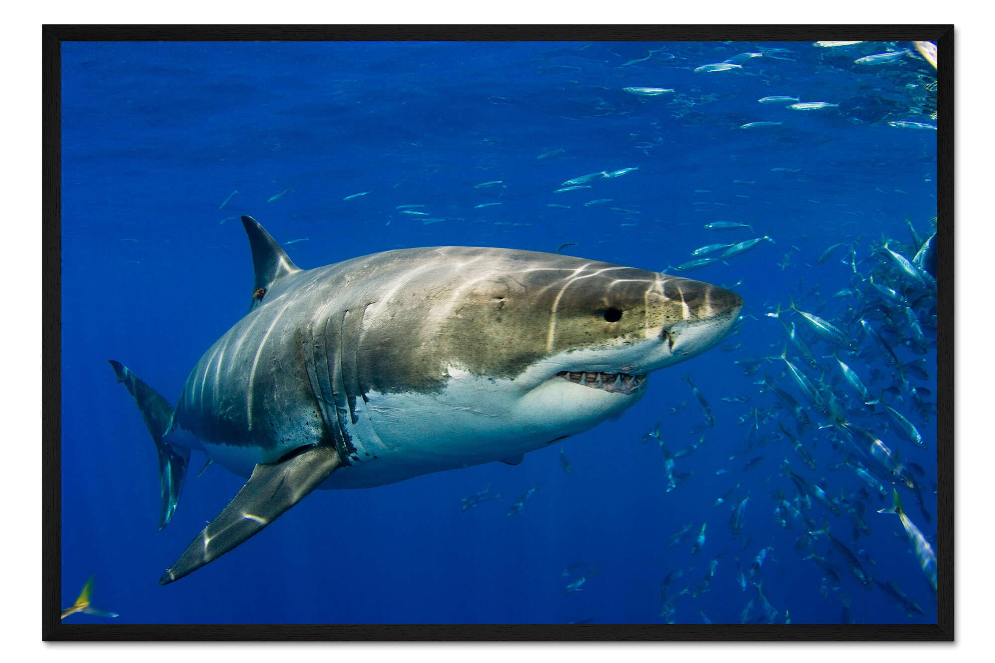 Posterlounge   Wandbilder   Blau   Dave Fleetham   Gerahmter Kunstdruck Weißer Hai