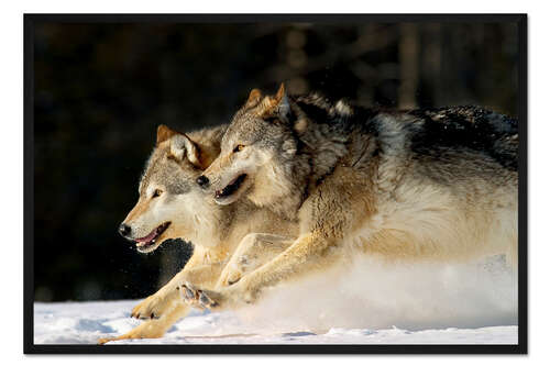Posterlounge   Wandbilder   Querformat   John Hyde   Gerahmter Kunstdruck Ein Rudel Grauwölfe im Tiefschnee