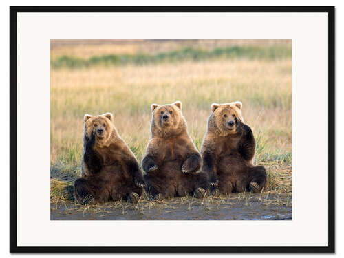 Posterlounge   Wandbilder   Fotografie   Gary Schultz   Gerahmter Kunstdruck Drei Grizzlies auf der Wiese