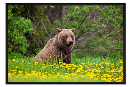 Posterlounge   Wandbilder   Fotografie   John Hyde   Gerahmter Kunstdruck Ein Braunbär auf einer Löwenzahnwiese