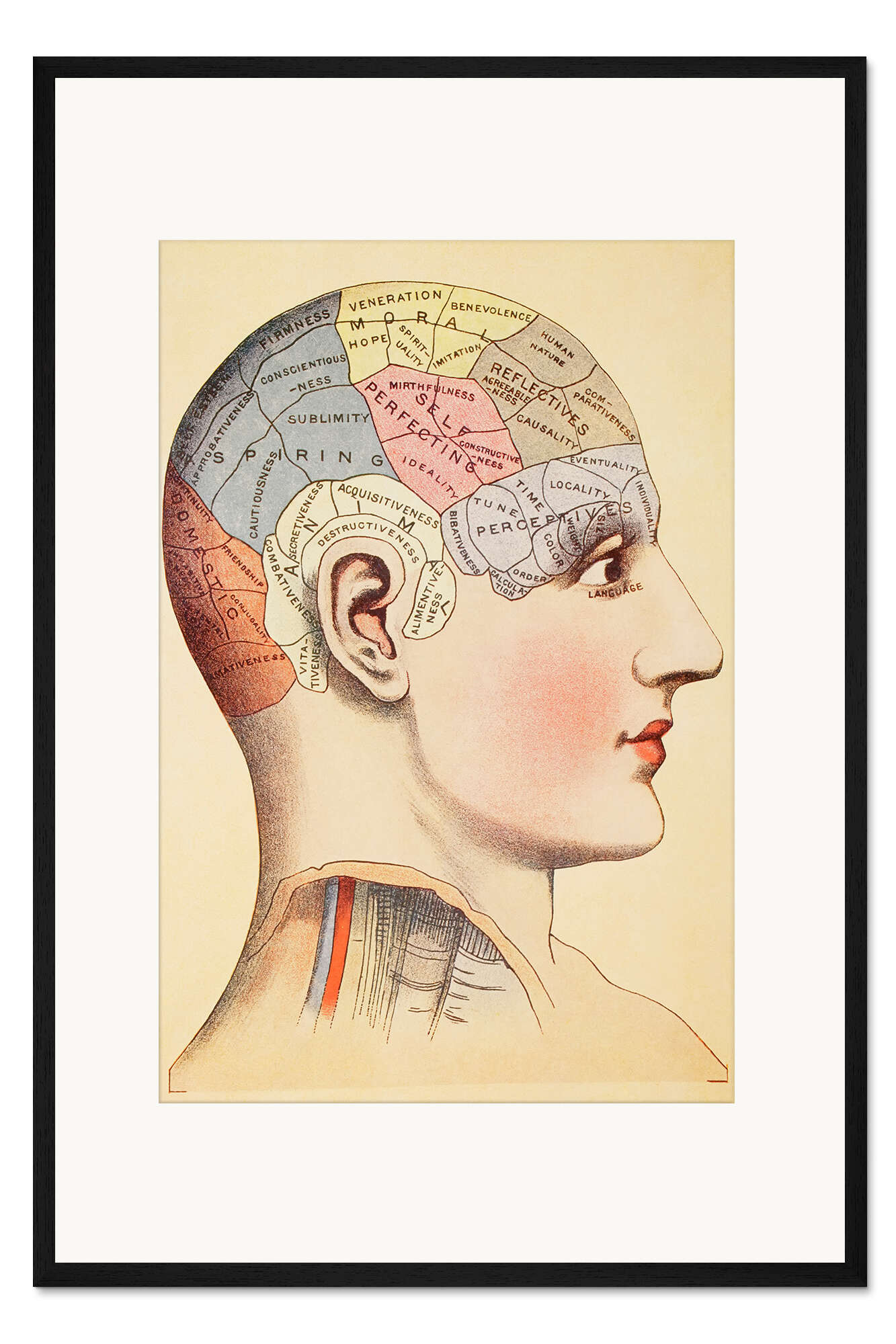 Posterlounge   Wandbilder   Illustration   Vintage Educational Collection   Gerahmter Kunstdruck Karte des menschlichen Gehirns (Englisch)