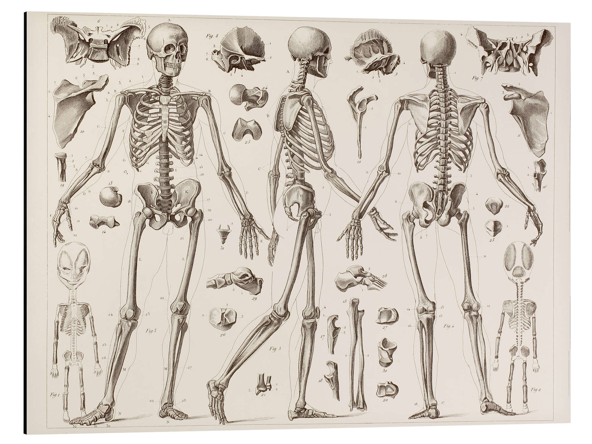 Posterlounge   Wandbilder   Illustration   Vintage Educational Collection   Magnettafel Skelett eines ausgewachsenen Menschen