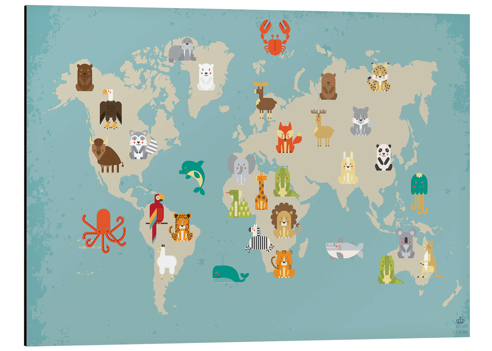 Weltkarte mit Tieren von Petit Griffin