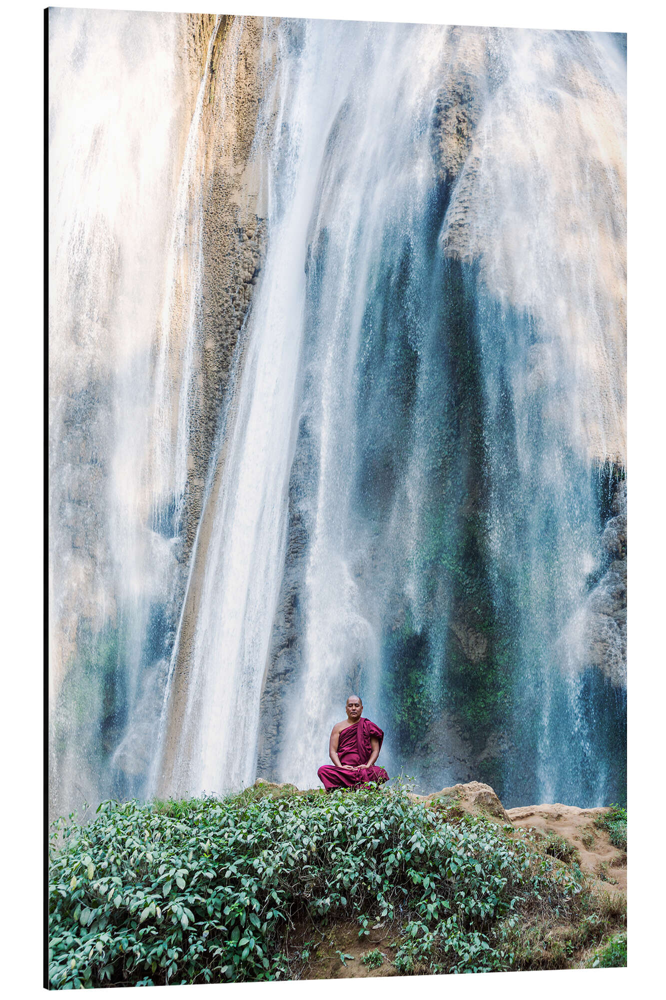 Magnettafel Mönch meditiert am Wasserfall