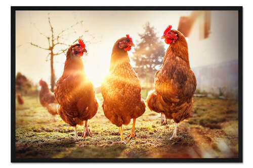 Posterlounge   Wandbilder   Orange   Gabi Stickler   Gerahmter Kunstdruck Hühner auf dem Laufsteg