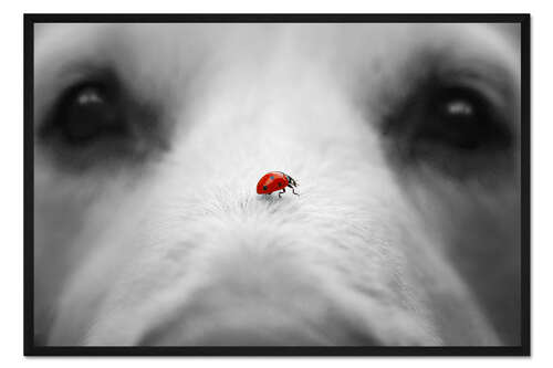Posterlounge   Wandbilder   Querformat   Gabi Stickler   Gerahmter Kunstdruck Marienkäfer auf Hundenase